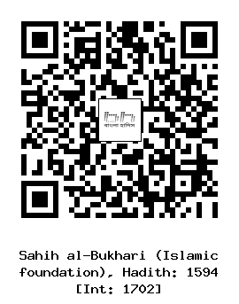 ১৫৯৪। আবূ নু’মান (রহঃ) ... ’আয়িশা (রাঃ) থেকে বর্ণিত তিনি বলেন, আমি নবী সাল্লাল্লাহু আলাইহি ওয়াসাল্লাম এর (কুরবানীর [হাদী] পশুর) কিলাদাগুলো পাকিয়ে দিতাম আর তিনি তা বকরীর গলায় পরিয়ে দিতেন। এরপর তিনি নিজ পরিবারে হালাল অবস্থায় থেকে যেতেন।