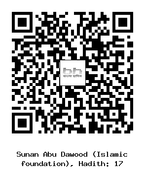 ১৭. মুহাম্মাদ ইবনুল মুছান্না .... আল-মুহাজির ইবনু কুনফুয (রাঃ) হতে বর্ণিত তিনি বলেছেন যে, একদা তিনি নবী সাল্লাল্লাহু আলাইহি ওয়া সাল্লামের খেদমতে এমতাবস্হায় পৌছলেন যখন তিনি নবী সাল্লাল্লাহু আলাইহি ওয়াসাল্লাম পেশাবরত ছিলেন। তিনি তাকে সাল্লাম দেন কিন্তু নবী সাল্লাল্লাহু আলাইহি ওয়াসাল্লাম উযূ (ওজু/অজু/অযু) না করা পর্যন্ত তার সালামের জবাব থেকে বিরত থাকলেন অতঃপর তিনি তার নিকট ওজর পেশ করে বলেন। আমি পবিত্র হওয়া বা পবিত্রতা অর্জন করা ব্যতীত আল্লাহ্ তাআলার নাম স্মরণ করা অপছন্দ করি। (নাসাঈ, ইবনু মাজাহ)।