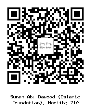 ৭১০. মুসলিম ইবনু ইব্রাহীম .... আয়িশা (রাঃ) হতে বর্ণিত। তিনি বলেন, নবী সাল্লাল্লাহু আলাইহি ওয়াসাল্লাম নামায পড়াকালে আমি তাঁর ও বিছানার মাঝখানে ছিলাম। শো’বার বর্ণনায় আছে, সন্তবতঃ আয়িশা (রাঃ) বলেন, এ সময় আমি ঋতুবতী ছিলাম। এ হাদীছ আয়িশা (রাঃ) হতে বিভিন্ন সূত্রে বর্ণিত হয়েছে, এবং কোন কোন বর্ণনায় “আমি ঋতুবতী ছিলাম” এক কথার উল্লেখ নেই।