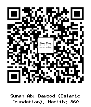 ৮৬০. মুআাম্মাল ইবনু হিশাম .... রিফাআ ইবনু রাফে (রাঃ) নবী সাল্লাল্লাহু আলাইহি ওয়াসাল্লাম হতে উপরোক্ত ঘটনা বর্ণনা করেন। তিনি বলেনঃ “তাকবীর তাহরীমা” বলার পর তুমি কুরআনের সহজতম অংশ পাঠ করবে। তিনি বলেনঃ তুমি যখন নামাযের মধ্যে প্রথম বৈঠকে উপবেশন কর, তখন শান্তির সাথে বসবে এবং এ সময় তোমার বাম পা বিছিয়ে দিয়ে অতঃপর তাশাহ্হুদ পাঠ করবে। পরে যখন তুমি দাঁড়াবে, তখন উপরোক্ত নিয়মে নামায শেষ করবে।