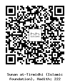 ২২২. মুহাম্মাদ ইবনু বাশশার (রহঃ) .... জুনদুব ইবনু সুফইান রাদিয়াল্লাহু আনহু থেকে বর্ননা করেন যে, রাসূল সাল্লাল্লাহু আলাইহি ওয়াসাল্লাম ইরশাদ করেন যে, ব্যক্তি ফজরের সালাত আদায় করবে সে আল্লাহর দায়িত্বে থাকবে। সুতরাং তোমরা কেউ আল্লাহর দায়িত্বের বিষয়ে বিশ্বাস ভঙ্গ করো না। - তা’লীকুর রাগীব ১/১৪১,১৬৩, মুসলিম, তিরমিজী হাদিস নম্বরঃ ২২২ [আল মাদানী প্রকাশনী]