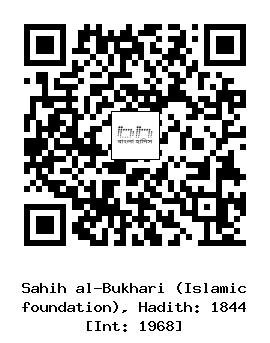 ১৮৪৪। মুহাম্মদ ইবনু বাশশার (রহঃ) ... আবূ জুহায়ফা (রাঃ) থেকে বর্ণিত, তিনি বলেন, নবী সাল্লাল্লাহু আলাইহি ওয়াসাল্লাম সালমান (রাঃ) ও আবূদ দারদা (রাঃ) এর মাঝে ভ্রাতৃত্ব বন্ধন করে দেন। (একবার) সালমান (রাঃ) আবূদ দারদা (রাঃ) এর সাথে সাক্ষাৎ করতে এসে উম্মুদ দারদা (রাঃ) কে মলিন কাপড় পরিহিত দেখতে পান। তিনি এর কারণ জিজ্ঞাসা করলে উম্মুদ দারদা (রাঃ) বললেন, আপনার ভাই আবূদ দারদার পার্থিব কোন কিছুর প্রতি মোহ নেই। কিছুক্ষণ পরে আবূদ দারদা (রাঃ) এলন। তারপর তিনি সালমান (রাঃ) এর জন্য আহার্য প্রস্তুত করান এবং বলেন, আপনি খেয়ে নিন, আমি সাওম (রোযা/রোজা/সিয়াম/ছিয়াম) পালন করছি। সালমান (রাঃ) বললেন, আপনি না খেলে আমি খাব না।