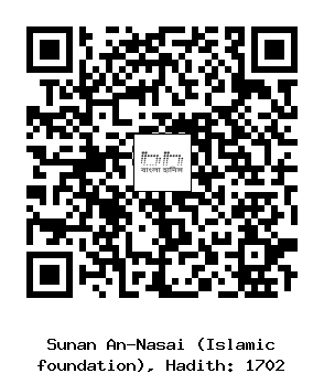 ১৭০২। আলী ইবনু মায়মূন (রহঃ) ... উবাই ইবনু কা’ব (রাঃ) থেকে বর্ণিত যে, রাসুলুল্লাহ সাল্লাল্লাহু আলাইহি ওয়াসাল্লাম বিতরের সালাত তিন রাকআত আদায় করতেন। প্রথম রাকআত “সাব্বিহিসমা রাব্বিকাল আলা” দ্বিতীয় রাকআতে “ইয়া আয়্যুহাল কাফিরুন” তৃতীয় রাকআতে “কুল হুওয়াল্লাহু আহাদ” পাঠ করতেন এবং রুকুতে যাওয়ার পুর্বে দোয়ায়ে কুনূত পড়তেন। যখন সালাত শেষ করতে যেতেন তখন তিনি শেষ পর্যন্ত তিনবারسُبْحَانَ الْمَلِكِ الْقُدُّوسِ পড়তেন।