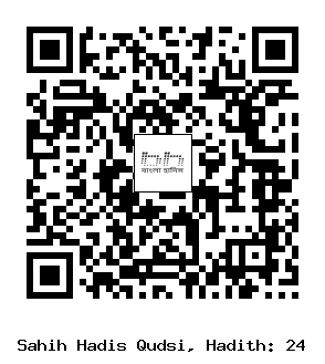 ২৪. আবূ হুরায়রা রাদিয়াল্লাহু আনহু থেকে বর্ণিত, রাসূলুল্লাহ সাল্লাল্লাহু আলাইহি ওয়াসাল্লাম বলেছেন: “আল্লাহ তা’আলা বলেন: আমার সম্পর্কে আমার বান্দার ধারণা মোতাবেক আমি।[1] আমি তার সাথে থাকি[2] যখন সে আমাকে স্মরণ করে। যদি সে আমাকে তার অন্তরে স্মরণ করে আমি তাকে আমার অন্তরে স্মরণ করি। যদি সে আমাকে মজলিসে স্মরণ করে আমি তাকে তাদের চেয়ে উত্তম মজলিসে স্মরণ করি। যদি সে আমার নিকট এক বিঘত অগ্রসর হয় আমি তার নিকট একহাত অগ্রসর হই, যদি সে আমার নিকট একহাত অগ্রসর হয় আমি তার নিকট একবাহু অগ্রসর হই। যদি সে আমার নিকট আসে হেঁটে আমি তার নিকট যাই দ্রুত”। [বুখারি, মুসলিম, তিরমিযি ও ইবনু মাজাহ] হাদিসটি সহিহ।