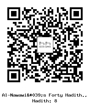 ৮। ইবনু উমার রাদিয়াল্লাহু ’আনহুমা হতে বর্ণিত, রাসূলুল্লাহ্ সাল্লাল্লাহু ’আলাইহি ওয়াসাল্লাম বলেছেন: