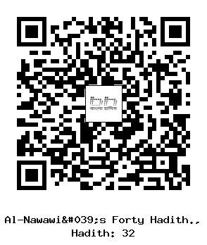 ৩২। আবূ সাঈদ সা’দ ইবনু মালিক ইবনু সিনান আল-খুদরী রাদিয়াল্লাহু ’আনহু হতে বর্ণিত, রাসূল সাল্লাল্লাহু ’আলাইওয়াসাল্লাম বলেছেন: "ক্ষতি করা উচিত নয়, আর ক্ষতির সম্মুখীন হওয়াও উচিত নয়।"