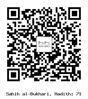 ৭১. হুমায়দ ইবনু ‘আবদুর রহমান (রহ.) হতে বর্ণিত। তিনি বলেনঃ আমি মু‘আবিয়াহ (রাযি.)-কে খুৎবায় বলতে শুনেছি, তিনি বলেন, আমি নবী সাল্লাল্লাহু আলাইহি ওয়াসাল্লাম -কে বলতে শুনেছি, আল্লাহ্ যার মঙ্গল চান, তাকে দ্বীনের ‘ইল্ম দান করেন। আমি তো বিতরণকারী মাত্র, আল্লাহ্ই (জ্ঞান) দাতা। সর্বদাই এ উম্মাত কিয়ামত পর্যন্ত আল্লাহর হুকুমের উপর কায়িম থাকবে, বিরোধিতাকারীরা তাদের কোন ক্ষতি করতে পারবে না। (৩১১৬, ৩৬৪১,৭৩১২, ৭৪৬০; মুসলিম ১২/৩৩ হাঃ ১০৩৭, আহমাদ ১৬৮৪৯, ১৬৮৭৮, ১৬৯১০) (আধুনিক প্রকাশনীঃ ৭১, ইসলামিক ফাউন্ডেশনঃ ৭১)