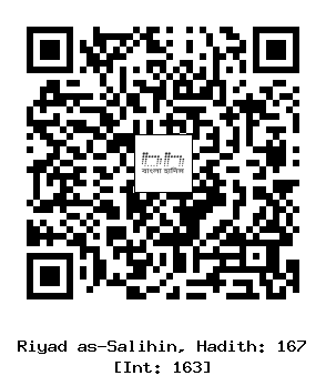 ৮/১৬৭। জাবের রাদিয়াল্লাহু ’আনহু কর্তৃক বর্ণিত, তিনি বলেন, রাসূলুল্লাহ সাল্লাল্লাহু আলাইহি ওয়াসাল্লাম বলেছেন, ’’আমার ও তোমাদের উদাহরণ ঐ ব্যক্তির মত যে আগুন প্রজ্জ্বলিত করল। অতঃপর তাতে উচ্চুঙ্গ ও পতঙ্গ পড়তে আরম্ভ করল, আর সে ব্যক্তি তা হতে তাদেরকে বাধা দিতে লাগল। আমিও তোমাদের কোমর ধরে তোমাদেরকে জাহান্নামের আগুন থেকে বাঁচাচ্ছি, আর তোমরা আমার হাত থেকে ছুটে গিয়ে (জাহান্নামের আগুনে) পতিত হচ্ছ।’’[1]