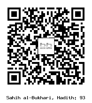 ৯৩. আনাস ইবনু মালিক (রাযি.) হতে বর্ণিত। একদা আল্লাহর রাসূল সাল্লাল্লাহু আলাইহি ওয়াসাল্লাম বের হলেন। তখন ‘আবদুল্লাহ্ ইবনু হুযাফাহ দাঁড়িয়ে বললেন, ‘আমার পিতা কে?’ তিনি বললেনঃ ‘তোমার পিতা হুযাফাহ।’ অতঃপর তিনি বারবার বলতে লাগলেন, ‘তোমরা আমাকে প্রশ্ন কর।’ ‘উমার (রাযি.) তখন জানু পেতে বসে বললেনঃ ‘আমরা আল্লাহকে প্রতিপালক হিসেবে, ইসলামকে দ্বীন হিসেবে এবং মুহাম্মাদ সাল্লাল্লাহু আলাইহি ওয়াসাল্লাম -কে নবী হিসেবে সন্তুষ্ট চিত্তে গ্রহণ করে নিয়েছি।’ তিনি এ কথা তিনবার বললেন। এতে আল্লাহর রাসূল সাল্লাল্লাহু আলাইহি ওয়াসাল্লাম নীরব হলেন। (৫৪০, ৭৪৯, ৪৬২১, ৬৩৬২, ৬৪৬৮, ৬৪৮৬, ৭০৮৯, ৭০৯০, ৭০৯১, ৭২৯৪, ৭২৯৫; মুসলিম ৪৩/৩৭ হাঃ ২৩৫৯, আহমাদ ১২৬৫৯) (আধুনিক প্রকাশনীঃ ৯৩, ইসলামিক ফাউন্ডেশনঃ ৯৩)