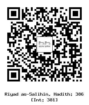 ৭/৩৮৬। মু’আয রাদিয়াল্লাহু ’আনহু বলেন, আমি রাসূলুল্লাহ সাল্লাল্লাহু আলাইহি ওয়াসাল্লাম-কে বলতে শুনেছি, আল্লাহ তা’আলা বলেন, ’’আমার মর্যাদার ওয়াস্তে যারা আপোসে ভালবাসা স্থাপন করবে, তাদের (বসার) জন্য হবে নূরের মিম্বর; যা দেখে নবী ও শহীদগণ ঈর্ষা করবেন।’’(তিরমিযী, হাসান সূত্রে) [1]