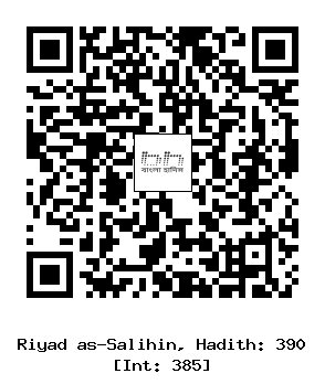 ১১/৩৯০। আনাস রাদিয়াল্লাহু ’আনহু থেকে বর্ণিত, তিনি বলেন, এক ব্যক্তি নবী সাল্লাল্লাহু আলাইহি ওয়াসাল্লাম-এর নিকট (বসে) ছিল। অতঃপর এক ব্যক্তি তাঁর পাশ দিয়ে অতিক্রম করল। (যে বসেছিল) সে বলল, ’হে আল্লাহর রাসূল! নিঃসন্দেহে আমি একে ভালবাসি।’ (এ কথা শুনে) নবী সাল্লাল্লাহু আলাইহি ওয়াসাল্লাম তাকে বললেন, ’’তুমি কি (এ কথা) তাকে জানিয়েছ?’’ সে বলল, ’না।’ তিনি বললেন, ’’তাকে জানিয়ে দাও।’’ সুতরাং সে (দ্রুত) তার পিছনে গিয়ে (তাকে) বলল, ’আমি আল্লাহর ওয়াস্তে তোমাকে ভালবাসি।’ সে বলল, ’যাঁর ওয়াস্তে তুমি আমাকে ভালবাস, তিনি তোমাকে ভালবাসুন।’ (আবূ দাউদ, বিশুদ্ধ সূত্রে) [1]