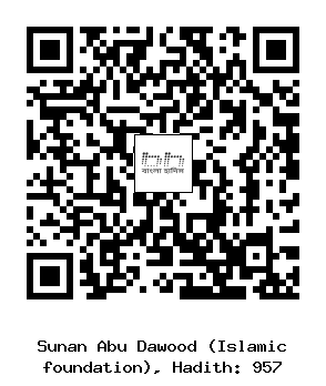 ৯৫৭. মুসাদ্দাদ (রহঃ) .... ওয়ায়েল ইবনে হুজর (রাঃ) হতে বর্ণিত। তিনি বলেন, একদা আমি রাসূলুল্লাহ সাল্লাল্লাহু আলাইহি ওয়াসাল্লাম এর নামায আদায়ের পদ্ধতির প্রতি নজর করি। আমি দেখি যে, রাসূলুল্লাহ সাল্লাল্লাহু আলাইহি ওয়াসাল্লাম কিবলামুখী হয়ে দণ্ডায়মান হন। অতঃপর তিনি ’আল্লাহু আকবার’ বলে স্বীয় উভয় হস্ত কান পর্যন্ত উঠান এবং পরে ডান হাত দ্বারা বাম হাত চেপে ধরেন। পরে যখন তিনি রুকু করার ইরাদা করেন, তখন তিনি উভয় হস্ত অনুরূপভাবে উত্তোলন করেন। অতঃপর তিনি বাম পা বিছিয়ে দিয়ে, বাম হাত উক্ত পায়ের রানের উপর রাখেন এবং ডান হাতের কনুই ডান পা হতে বিচ্ছিন্নভাবে রাখেন এবং কনিষ্ঠ ও অমানিকা আংগুলীদ্বয়কে গুটিয়ে রাখেন এবং ডান বৃদ্ধাঙ্গুলিকে মধ্যমার সাথে মিশ্রিত করে বৃত্তাকার রাখেন। অতঃপর আমি তাঁকে এরূপ করতে দেখেছি। (রাবী বলেন) অতঃপর বিশর তাঁর বৃদ্ধাংগুলোকে মধ্যমার সাথে মিলিয়ে বৃত্তাকারে রাখেন এবং শাহাদাত আংগুলি দ্বারা ইশারা করেন। (নাসাঈ, ইবনে মাজাহ)।