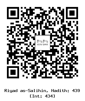 ২৩/৪৩৯। ইবনে মাসঊদ রাদিয়াল্লাহু ’আনহু কর্তৃক বর্ণিত, তিনি বলেন, এক ব্যক্তি এক মহিলাকে চুমা দিয়ে ফেলে। পরে সে নবী সাল্লাল্লাহু আলাইহি ওয়াসাল্লাম এর নিকট এসে বিষয়টি জানায়। তখন আল্লাহ তা’আলা এই আয়াত অবতীর্ণ করেন, ’’দিনের দু’প্রান্তে সকাল ও সন্ধ্যায় এবং রাতের প্রথম ভাগে নামায কায়েম কর। নিশ্চয়ই পুণ্যরাশি পাপরাশিকে মিটিয়ে দেয়।’’ (সূরা হূদ ১১৪) লোকটি জিজ্ঞেস করল, ’হে আল্লাহর রাসূল! এ কি শুধু আমার জন্য?’ তিনি বললেন, ’’না, এ আমার সকল উম্মতের জন্য।’’ (বুখারী ও মুসলিম) [1]