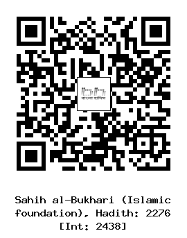২২৭৬। মুহাম্মদ ইবনু ইউসুফ (রহঃ) ... যায়দ ইবনু খালিদ (রাঃ) থেকে বর্ণিত যে, নবী সাল্লাল্লাহু আলাইহি ওয়াসাল্লাম এর কাছে জনৈক বেদুঈন পড়ে থাকা বস্তু সম্পর্কে জিজ্ঞাসা করল। তিনি বললেন, এক বছর পর্যন্ত এটার ঘোষণা দিতে থাক। যদি কেউ আসে এবং তার থলে ও বাঁধন সম্পর্কে বিবরণ দেয়, (তা হলে তাকে ফিরিয়ে দাও)। নতুবা তুমি নিজে সেটা ব্যবহার করা। এরপর সে হারিয়ে যাওয়া উট সম্পর্কে জিজ্ঞাসা করল। তখন নবী সাল্লাল্লাহু আলাইহি ওয়াসাল্লাম এর চেহারার রং পরিবর্তন হয়ে গেল। তিনি বললেন, সেটা দিয়ে তোমার কি প্রয়োজন? তার সাথে মশক ও ক্ষুর রয়েছে। সে নিজেই পানির কাছে যায়, গাছের পাতা খায়। তাকে ছেড়ে দাও যতক্ষণ না তার মালিক তাকে ফিরে পায়। তারপর সে তাকে হারিয়ে যাওয়া বকরী, সম্পর্কে জিজ্ঞাসা করল। তিনি বললেন, সেটা তোমার অথবা তোমার ভাইয়ের, আর তা না হলে নেকড়ে বাঘের।