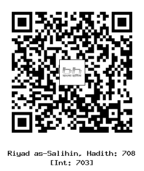 ১/৭০৮। আয়েশা রাদিয়াল্লাহু আনহা হতে বর্ণিত, তিনি বলেন, ’নবী সাল্লাল্লাহু আলাইহি ওয়াসাল্লামকে কখনো এমন উচ্চহাস্য হাসতে দেখিনি যাতে তাঁর আলজিভ দেখতে পাওয়া যেত। আসলে তিনি মুচকি হাসতেন।’ (বুখারী-মুসলিম)[1]