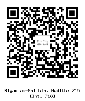 ৩/৭১৫। আবূ হুরাইরা রাদিয়াল্লাহু ’আনহু হতে বর্ণিত, তিনি বলেন, আমরা আল্লাহর রাসূল সাল্লাল্লাহু আলাইহি ওয়াসাল্লাম এর চারিপাশে বসেছিলাম। আমাদের সাথে আবূ বকর ও উমার (রাদিয়াল্লাহু ’আনহুমা) তথা অন্যান্য সাহাবীগণও ছিলেন। ইত্যবস্থায় রাসূলুল্লাহ সাল্লাল্লাহু আলাইহি ওয়াসাল্লাম আমাদের মাঝ থেকে উঠে (বাইরে) চলে গেলেন। যখন তিনি ফিরে আসতে দেরি করে দিলেন, তখন আমাদের আশংকা হল যে, আমাদের অনুপস্থিতিতে তিনি (শত্রু) কবলিত না হন। এ দুশ্চিন্তায় আমরা ঘাবড়ে গেলাম এবং উঠে পড়লাম। তাঁদের মধ্যে আমিই সর্বপ্রথম ঘাবড়ে গিয়েছিলাম। সুতরাং আমি রাসূলুল্লাহ সাল্লাল্লাহু আলাইহি ওয়াসাল্লাম এর সন্ধানে বেরিয়ে পড়লাম। শেষ পর্যন্ত আমি আনসারদের বনূ নাজ্জারের একটি বাগানে পৌঁছে তার চতুর্দিকে ঘুরতে লাগলাম, যদি কোন (প্রবেশ) দরজা পাই। কিন্তু তার কোন (প্রবেশ) দরজা পেলাম না। হঠাৎ দেখলাম বাইরের একটি কুয়া থেকে সরু নালা ঐ বাগানের ভিতরে চলে গেছে। আমি সেখান দিয়ে জড়সড় হয়ে বাগানের মধ্যে ঢুকে পড়লাম। (দেখলাম,) আল্লাহর রাসূল সাল্লাল্লাহু আলাইহি ওয়াসাল্লাম সেখানে উপস্থিত।