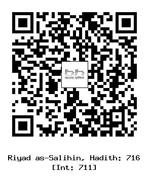৪/৭১৬। ইবনে শিমাসাহ হতে বর্ণিত, তিনি বলেন, ’আমর ইবনে ’আস রাদিয়াল্লাহু ’আনহু-এর মরণোন্মুখ সময়ে আমরা তাঁর নিকটে উপস্থিত হলাম। তিনি অনেকক্ষণ ধরে কাঁদতে থাকলেন এবং দেওয়ালের দিকে মুখ ফিরিয়ে নিলেন। এরূপ অবস্থা দেখে তাঁর এক ছেলে বলল, ’আব্বাজান! আপনাকে কি রাসূলুল্লাহ সাল্লাল্লাহু আলাইহি ওয়াসাল্লাম অমুক জিনিসের সুসংবাদ দেননি? আপনাকে কি রাসূলুল্লাহ সাল্লাল্লাহু আলাইহি ওয়াসাল্লাম অমুক জিনিসের সুসংবাদ দেননি?’ এ কথা শুনে তিনি তাঁর চেহারা সামনের দিকে করে বললেন, আমাদের সর্বোত্তম পুঁজি হল, এই সাক্ষ্য প্রদান করা যে, আল্লাহ ছাড়া কোন সত্য উপাস্য নেই এবং মুহাম্মাদ সাল্লাল্লাহু আলাইহি ওয়াসাল্লাম আল্লাহর রাসূল। আমি তিনটি স্তর অতিক্রম করেছি। (এক) আমার চেয়ে রাসূলুল্লাহ সাল্লাল্লাহু আলাইহি ওয়াসাল্লাম এর প্রতি বড় বিদ্বেষী আর কেউ ছিল না। তাঁকে হত্যা করার ক্ষমতা অর্জন করাই ছিল আমার তৎকালীন সর্বাধিক প্রিয় বাসনা। যদি (দুর্ভাগ্যক্রমে) তখন মারা যেতাম, তাহলে নিঃসন্দেহে আমি জাহান্নামী হতাম।