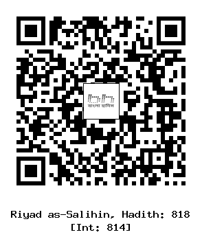১/৮১৮। বারা’ ইবনে ’আযেব রাদিয়াল্লাহু ’আনহু হতে বর্ণিত, তিনি বলেন, রাসূলুল্লাহ সাল্লাল্লাহু আলাইহি ওয়াসাল্লাম যখন শয্যাগ্রহণ করতেন, তখন ডান পার্শ্বে শয়ন করতেন এবং এই দো’আ পড়তেনঃ-