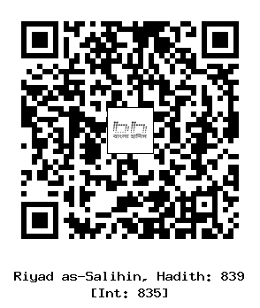 ১১/৮৩৯। আবূ হুরাইরা রাদিয়াল্লাহু ’আনহু হতে বর্ণিত, তিনি বলেন, রাসূলুল্লাহ সাল্লাল্লাহু আলাইহি ওয়াসাল্লাম বলেছেন, ’’যে জনগোষ্ঠীই কোন সভা থেকে, তাতে আল্লাহর যিকির না করেই উঠে যায়, আসলে তারা যেন মরা গাধা থেকে উঠে যায়। (অর্থাৎ যেন মৃত গাধার গোশ্ত ভক্ষণান্তে উঠে চলে যায়।) আর তাদের জন্য অনুতাপ হবে।’’ (আবূ দাঊদ বিশুদ্ধ সূত্রে) [1]