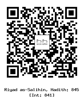 ৪/৮৪৫। আবূ সা’ঈদ খুদরী রাদিয়াল্লাহু ’আনহু থেকে বর্ণিত, তিনি নবী সাল্লাল্লাহু আলাইহি ওয়াসাল্লামকে বলতে শুনেছেন যে, ’’যখন তোমাদের মধ্যে কোন ব্যক্তি এমন স্বপ্ন দর্শন করে যা তার কাছে প্রীতিকর, তখন তা নিঃসন্দেহে মহান আল্লাহর পক্ষ থেকে (দেখানো) হয়। সুতরাং সে যেন তার জন্য আল্লাহর প্রশংসা করে এবং সে তা (স্বপ্ন) ব্যক্ত করে।’’ অন্য বর্ণনায় আছে যে, ’’সে যেন তা তার প্রিয়জন ছাড়া অন্য কারো কাছে ব্যক্ত না করে। আর যখন তাছাড়া কোন অপ্রীতিকর স্বপ্ন দর্শন করে, তখন তা নিঃসন্দেহে শয়তানের পক্ষ থেকে (দেখানো) হয়। সুতরাং সে যেন তার অনিষ্ট থেকে (আল্লাহর নিকট) আশ্রয় প্রার্থনা করে এবং কাউকে তা ব্যক্ত না করে। কেননা, (তাহলে) তা তার কোন ক্ষতি করতে পারবে না।’’ (বুখারী ও মুসলিম) [1]