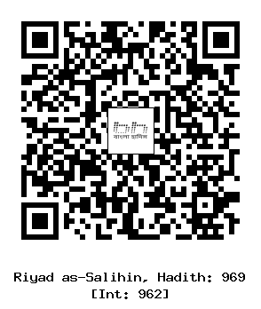 ১/৯৬৯। আবূ হুরাইরা রাদিয়াল্লাহু ’আনহু বলেন, রাসূলুল্লাহ সাল্লাল্লাহু আলাইহি ওয়াসাল্লাম বলেছেন, ’’যখন তোমরা সবুজ-শ্যামল ঘাসে ভরা যমীনে সফর করবে, তখন উটকে তার যমীনের অংশ দাও (অর্থাৎ কিছুক্ষণ চরতে দাও)। আর যখন তোমরা ঘাস-পানিবিহীন যমীনে সফর করবে, তখন তার উপর চড়ে দ্রুত চলো এবং তার শক্তি শেষ হওয়ার পূর্বেই গন্তব্যস্থানে পৌঁছে যাও। আর যখন তোমরা রাতে বিশ্রামের জন্য কোন স্থানে অবতরণ করবে, তখন আম রাস্তা থেকে দূরে থাকো। কারণ, তা রাতে (হিংস্র) জন্তুদের রাস্তা এবং (বিষাক্ত) পোকামাকড়ের আশ্রয় স্থল।’’ (মুসলিম) [1]