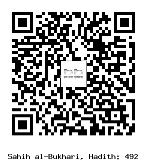 ৪৯২. ‘আবদুল্লাহ ইবনু ‘উমার (রাযি.) তাঁর নিকট আরও বর্ণনা করেছেন যে, নবী সাল্লাল্লাহু আলাইহি ওয়াসাল্লাম পাহাড়ের দু’টো প্রবেশপথ সামনে রাখতেন যা তার ও দীর্ঘ পাহাড়ের মাঝখানে কা‘বার দিকে রয়েছে। বর্তমানে সেখানে যে মাসজিদ নির্মিত হয়েছে, সেটিকে তিনি [ইবনু ‘উমার (রাযি.)] টিলার প্রান্তের মাসজিদটির বাম পাশে রাখতেন। কিন্তু নবী সাল্লাল্লাহু আলাইহি ওয়াসাল্লাম -এর সালাতের জায়গা ছিল এর নীচের কাল টিলার উপরে। এটি প্রথম টিলা হতে প্রায় দশ হাত দূরে। অতঃপর যে পাহাড়টি তোমার ও কা‘বার মাঝখানে পড়বে তার দু’প্রবেশ দ্বারের দিকে মুখ করে তুমি সালাত আদায় করবে। (মুসলিম ১৫/৩৮, হাঃ ১২৫৯, ১২৬০, আহমাদ ৫৬০৫) (আধুনিক প্রকাশনীঃ ৪৬২ শেষাংশ, ইসলামিক ফাউন্ডেশনঃ ৪৬৮ শেষাংশ)