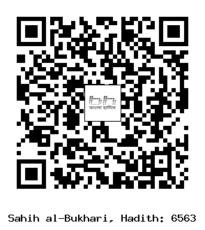 ৬৫৬৩. আদী ইবনু হাতিম (রাঃ) হতে বর্ণিত যে, নবী সাল্লাল্লাহু আলাইহি ওয়াসাল্লাম (একবার) জাহান্নামের উল্লেখ করলেন। এরপর তিনি তাঁর চেহারা ফিরিয়ে নিলেন এবং এর থেকে নিরাপত্তা চাইলেন। আবার তিনি জাহান্নামের উল্লেখ করে মুখ ফিরিয়ে নিলেন ও এর থেকে নিরাপত্তা চাইলেন। অতঃপর তিনি বললেনঃ তোমরা জাহান্নামের আগুন হতে নিজেদেরকে রক্ষা কর এক টুকরা খেজুরের বিনিময়ে হলেও। আর যে তাতেও অক্ষম সে যেন ভাল কথার বিনিময়ে হলেও নিজেকে রক্ষা করে।[1] [১৪১৩] (আধুনিক প্রকাশনী- ৬১০৯, ইসলামিক ফাউন্ডেশন- ৬১১৭)