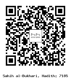 ৭১৮৫. উম্মু সালামাহ (রাঃ) হতে বর্ণিত। তিনি বলেন, নবী সাল্লাল্লাহু আলাইহি ওয়াসাল্লাম তাঁর দরজার পাশে ঝগড়া বিবাদের আওয়াজ শুনতে পেলেন। তাই তিনি তাদের কাছে বেরিয়ে গেলেন এবং বললেনঃ আমি একজন মানুষ মাত্র। ঝগড়া বিবাদ আমার কাছে নিয়ে আসা হয়। হয়ত তাদের কেউ অন্যের চেয়ে পটুভাষী। আমি তার ভিত্তিতে ফায়সালা করি এবং আমি মনে করি সে সত্যবাদী। সুতরাং আমি যদি কাউকে অন্য মুসলিমের হক দেয়ার ফায়সালা করি তাহলে তা (তার জন্য) এক টুকরা আগুন ছাড়া কিছু নয়। কাজেই সে তা গ্রহণ করুক কিংবা ছেড়ে দিক। [২৪৫৮] (আধুনিক প্রকাশনী- ৬৬৮২, ইসলামিক ফাউন্ডেশন- ৬৬৮৫)