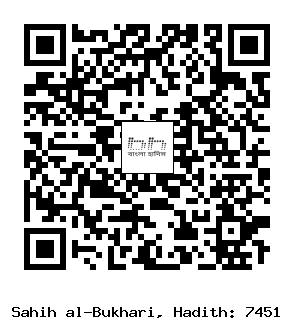 ৭৪৫১. ’আবদুল্লাহ্ (রাঃ) হতে বর্ণিত। তিনি বলেন, এক ইয়াহূদী বিদ্বান রাসূলুল্লাহ্ সাল্লাল্লাহু আলাইহি ওয়াসাল্লাম-এর নিকট এসে বলল, হে মুহাম্মাদ! আল্লাহ্ কিয়ামতের দিন আসমানকে একে আঙ্গুলের ওপর, পৃথিবীকে এক আঙ্গুলের ওপর, পর্বতরাজিকে এক আঙ্গুলের ওপর, বৃক্ষলতা ও নদী-নালাকে এক আঙ্গুলের ওপর এবং অন্য সকল সৃষ্টিকে এক আঙ্গুলের ওপর রেখে দেবেন। এবং নিজ হাতে ইশারা দিয়ে বলবেন, সম্রাট একমাত্র আমিই। এতে রাসূলুল্লাহ্ সাল্লাল্লাহু আলাইহি ওয়াসাল্লাম হাসলেন এবং বললেনঃ তারা আল্লাহর যথাযোগ্য মর্যাদা উপলব্ধি করেনি- (সূরাহ আন’আম ৬/৯১)। [৪৮১১] (আধুনিক প্রকাশনী- ৬৯৩৩, ইসলামিক ফাউন্ডেশন- ৬৯৪৩)