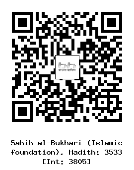 ৩৫৩৩। আলী ইবনু মুসলিম (রহঃ) ... আনাস (রাঃ) থেকে বর্ণিত, দু’ব্যাক্তি অন্ধকার রাতে নবী সাল্লাল্লাহু আলাইহি ওয়াসাল্লাম এর নিকট থেকে বের হলেন। হঠাৎ তারা তাদের সন্মুখে একটি উজ্জ্বল আলো দেখতে পেলেন। রাস্তায় তাঁরা যখন ভিন্ন হয়ে পড়লেন তখন আলোটিও তাঁদের উভয়ের সাথে ভিন্ন ভিন্ন হয়ে গেল। মা’মার (রহঃ) সাবিত (রহঃ) এর মাধ্যমে আনাস (রাঃ) থেকে বর্ণনা করেন যে, এদের একজন উসায়দ ইবনু হুযায়র (রাঃ) এবং অপরজন এক আনসারী ব্যাক্তি ছিলেন এবং আম্মদ (রহঃ) সাবিত (রহঃ) এর মাধ্যমে আনাস (রাঃ) থেকে বর্ণনা করেন যে, উসায়দ (ইবনু হুযায়র) ও আব্বাস ইবনু বিশর (রাঃ) নবী সাল্লাল্লাহু আলাইহি ওয়াসাল্লাম এর নিকট ছিলেন।
