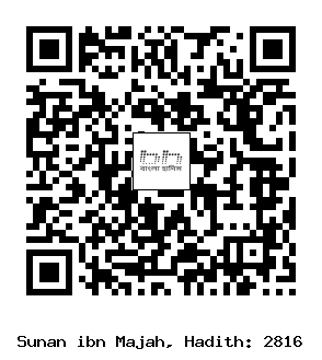 ১/২৮১৬। হারিস ইবনে হাসসান (রাঃ) থেকে বর্ণিত। তিনি বলেন, আমি মদীনায় পৌঁছে দেখলাম, রাসূলুল্লাহ সাল্লাল্লাহু আলাইহি ওয়াসাল্লাম মিম্বারের উপর দাঁড়িয়ে আছেন এবং বিলাল (রাঃ) তার গলায় তরবারি ঝুলিয়ে তাঁর সামনে দন্ডায়মান। আরও ছিল একটি কালো পতাকা। আমি বললাম, এই লোক কে? লোকেরা বললো, আমর ইবনুল আস (রাঃ)। তিনি একটি যুদ্ধ থেকে ফিরে এসেছেন।