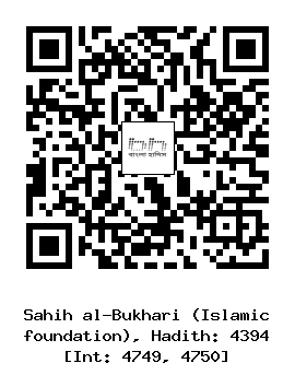 ৪৩৯৪। আবূ নুয়াইম (রহঃ) ... আয়িশা (রাঃ) থেকে বর্ণিত। তিনি বলেন, “যে এ অপবাদের প্রধান ভূমিকা নিয়েছিল, সে হল আবদুল্লাহ ইবনু উবায়। যখন তোমরা তা শ্রবন করলে, তখন কেন বললে না, এ বিষয়ে বলাবলি করা আমাদের উচিত নয়। আল্লাহ পবিত্র, এ তো এক গুরুতর অপবাদ। তারা কেন এ ব্যপারে চারজন সাক্ষী উপস্থিত করেনি? যেহেতু তারা সাক্ষী উপস্থিত করেনি, যেহেতু তারা সাক্ষী উপস্থিত করেনি, সে কারনে তারা আল্লাহর বিধানে মিথ্যাবাদী”।
