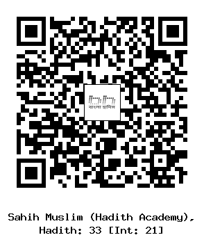 ৩৩-(৩৩/২১) আবূ তাহির ও হারমালাহ ইবনু ইয়াহইয়া ও আহমাদ ইবনু ঈসা (রহঃ) ..... আবূ হুরাইরাহ (রাযিঃ) থেকে বর্ণনা করেন যে, রাসূলুল্লাহ সাল্লাল্লাহু আলাইহি ওয়া সাল্লাম বলেছেন, "আল্লাহ ছাড়া প্রকৃত কোন ইলাহ নেই- এ কথার স্বীকৃতি না দেয়া পর্যন্ত লোকদের বিরুদ্ধে যুদ্ধ করতে আমি আদিষ্ট হয়েছি। সুতরাং যে কেউ "আল্লাহ ছাড়া প্রকৃত কোন ইলাহ নেই স্বীকার করবে সে আমা হতে তার জান মালের নিরাপত্তা লাভ করবে; তবে শারীআত সম্মত কারণ ব্যতীত। আর তার হিসাব-নিকাশ আল্লাহর কাছে। (ইসলামিক ফাউন্ডেশনঃ ৩৩, ইসলামিক সেন্টারঃ ৩৩)