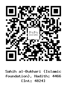 ৪৪৬৬। বিশর্ ইবনু খালিদ (রহঃ) ... আবদুল্লাহ (রাঃ) থেকে বর্ণিত। তিনি বলেন, আল্লাহ্ তা’আলা মুহাম্মাদসাল্লাল্লাহু আলাইহি ওয়াসাল্লাম কে পাঠিয়ে বলেছেন, “বল, আমি এর জন্য তোমাদের কোন প্রতিদান চাই না এবং যারা মিথ্যা দাবি করে তাদের অন্তর্ভুক্ত নই।” রাসূল সাল্লাল্লাহু আলাইহি ওয়াসাল্লাম যখন দেখলেন যে, কুরাইশরা তাঁর নাফরমানী করছে, তখন তিনি বললেন, ইয়া আল্লাহ্! ইউসুফ (আলাইহিস সালাম) এর সময়কার সাত বছরের দুর্ভিক্ষের মত দুর্ভিক্ষ দ্বারা তুমি আমাকে তাদের বিরুদ্ধে সাহায্য কর। ফলে দুর্ভিক্ষ তাদের গ্রাস করল। নিঃশেষ করে দিল তাদের সমস্ত কিছু, এমনকি তারা হাড় ও চামড়া খেতে আরম্ভ করল। আর একজন রাবী বলেছেন, তারা চামড়া ও মৃতদেহ খেতে লাগল। তখন যমীন থেকে ধোঁয়ার মত বের হতে লাগল।