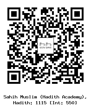 ১১১৫-(৫৩/৫৫০) আবূ বকর ইবনু আবূ শায়বাহ ও যুহারর ইবনু হারব (রহঃ) ..... আবূ হুরায়রাহ (রাযিঃ) থেকে বর্ণিত। (তিনি বলেছেনঃ) রসূলুল্লাহ সাল্লাল্লাহু আলাইহি ওয়াসাল্লাম একদিন মসজিদে কিবলার দিকে (কিবলার দিকের দেয়ালে) থুথু দেখতে পেলেন। তিনি (সাল্লাল্লাহু আলাইহি ওয়াসাল্লাম) তখন লোকদের কাছে এসে বললেনঃ তোমাদের কি হয়েছে যে, তোমরা কেউ তার প্রভুর সামনে দাঁড়িয়ে সামনের দিকে থুথু নিক্ষেপ করে। কেউ তোমাদের মুখের উপর দাঁড়িয়ে মুখের উপর থুথু নিক্ষেপ করুক এটা কি তোমরা পছন্দ করবে? তোমাদের কাউকে (মসজিদে) থুথু নিক্ষেপ করতে হলে সে যেন বাঁ দিকে পায়ের নীচে থুথু নিক্ষেপ করে। আর যদি এরূপ করার অবকাশ না পায় তাহলে যেন এরূপ করে। কাসিম ইবনু ইবরাহীম তা এভাবে করে দেখিয়ে দিলেন যে, তিনি কাপড়ে থুথু ফেললেন এবং কাপড়খানা ঘষলেন। (ইসলামী ফাউন্ডেশন ১১০৮, ইসলামীক সেন্টার, ১১১৭)