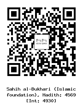 ৪৫৬৯। মাহমুদ (রহঃ) ... আবদুল্লাহ (রাঃ) হতে বর্ণিত। তিনি বলেন, আমরা রাসূল সাল্লাল্লাহু আলাইহি ওয়াসাল্লাম এর সাথে ছিলাম। এসময় তাঁর প্রতি সূরা মুরসালাত নাযিল হল। আমরা তাঁর মুখে শুনে সেটি শিখছিলাম। তখন একটি সাপ বেরিয়ে এল। আমরা ওদিকে দৌড়ে গেলাম, কিন্তু সাপটি আমাদের থেকে দ্রুত পালিয়ে গিয়ে গর্তে ঢুকে পড়ল। তখন রাসূল সাল্লাল্লাহু আলাইহি ওয়াসাল্লাম বললেন, তোমরা যেমন তার অনিষ্ট হতে রক্ষা পেলে, তেমনি সেও তোমাদের অনিষ্ট হতে বেঁচে গেল।