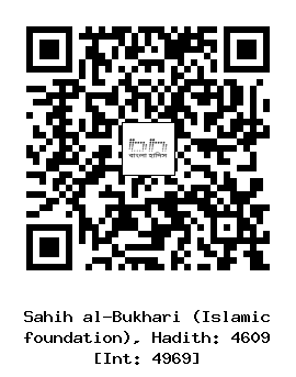 ৪৬০৯। আবদুল্লাহ ইবনু আবূ শায়বা (রহঃ) ... ইবনু আব্বাস (রাঃ) থেকে বর্ণিত। তিনি বলেন, উমর (রাঃ) লোকদেরকে আল্লাহর বাণীإِذَا جَاءَ نَصْرُ اللَّهِ وَالْفَتْحُ এর ব্যাখ্যা সম্বন্ধে জিজ্ঞেস করার পর তারা বললেন, এ আয়াতে শহর এবং প্রাসাদসমূহের বিজয়ের কথা বলা হয়েছে। এ কথা শুনে উমর (রাঃ) বললেন, হে ইবনু আব্বাস! তুমি কি বল? তিনি বললেন, এ আয়াতে ওফাত অথবা মুহাম্মদ সাল্লাল্লাহু আলাইহি ওয়াসাল্লাম এর দৃষ্টান্ত এবং তাঁর শান সম্পর্কে আলোচনা করা হয়েছে।