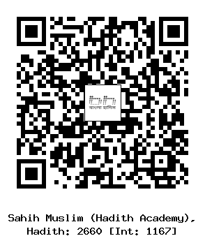 ২৬৬০-(২১৪/....) ইবনু আবূ উমর (রহঃ) ..... আবূ সাঈদ আল খুদরী (রাঃ) থেকে বর্ণিত। তিনি বলেন, রসূলুল্লাহ সাল্লাল্লাহু আলাইহি ওয়াসাল্লাম রমযান মাসের মাঝের দশকে ইতিকাফ করতেন। অবশিষ্ট বর্ণনা পূর্ববর্তী হাদীসের অনুরূপ। তবে এ বর্ণনায় আছে, "সে যেন তার ইতিকাফের স্থানে অবস্থান করে।” তিনি আরো বলেন, “তার কপাল মুবারক কাদা ও পানিতে সিক্ত ছিল।" (ইসলামিক ফাউন্ডেশন ২৬৩৭, ইসলামীক সেন্টার ২৬৩৬)