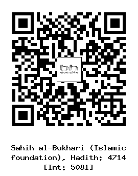 ৪৭১৪। আবদুল্লাহ ইবনু ইউসুফ (রহঃ) ... উরওয়া (রহঃ) বর্ণনা করেন যে, নবী সাল্লাল্লাহু আলাইহি ওয়াসাল্লাম আবূ বকর (রাঃ) এর কাছে আয়েশা (রাঃ)-এর শাদীর পয়গাম দিলেন। আবূ বকর (রাঃ) বললেন, আমি আপনার ভাই। নবী সাল্লাল্লাহু আলাইহি ওয়াসাল্লাম বললেন, তুমি আমার আল্লাহর দ্বীনের এবং কিতাবের ভাই। তবে, সে আমার জন্য হালাল।