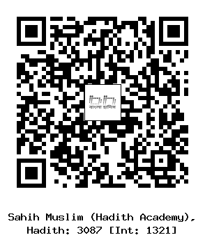 ৩০৮৭-(৩৬০/...) সাঈদ ইবনু মানসূর, যুহায়র ইবনু হারব, খালাফ ইবনু হিশাম ও কুতায়বাহ্ ইবনু সাঈদ (রহঃ) ..... আয়িশাহ (রাযিঃ) থেকে বর্ণিত। তিনি বলেন, আমার চোখে সে দৃশ্য ভাসছে- আমি যেন রসূলুল্লাহ সাল্লাল্লাহু আলাইহি ওয়াসাল্লাম এর কুরবানীর পশুর (গলায় পরানোর জন্য) মালা তৈরি করে দিচ্ছি। ..... অবশিষ্ট বর্ণনা পূর্বোক্ত হাদীসের অনুরূপ। (ইসলামিক ফাউন্ডেশন ৩০৬২, ইসলামীক সেন্টার ৩০৫৯)