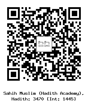 ৩৪৭০-(৮/...) হাসান ইবনু আলী আল হুলওয়ানী ও মুহাম্মাদ ইবনু রাফি (রহিমাহুমাল্লাহ) ..... আয়িশাহ (রাযিঃ) বলেন, একদা আমার দুধচাচা আবূল জাদ আমার নিকট প্রবেশ করার জন্য অনুমতি চাইলেন। আমি তাকে ফিরিয়ে দিলাম। (রাবী) ইবনু জুরায়জ বলেন, আমাকে হিশাম বলেছেন, ঐ ব্যক্তি তো আবূল কু’আয়স। যখন নবী সাল্লাল্লাহু আলাইহি ওয়াসাল্লাম এলেন তখন আয়িশাহ্ (রাযিঃ) তাকে উক্ত ঘটনা সম্পর্কে অবহিত করেন। তিনি বললেন, কেন তুমি তাকে অনুমতি প্রদান করলে না? ধূলায় ধূসরিত হোক তোমার ডান হাত অথবা তিনি বলেছেন, ধূসরিত হোক তোমার হাত। (ইসলামিক ফাউন্ডেশন ৩৪৪৩, ইসলামীক সেন্টার ৩৪৪২)
