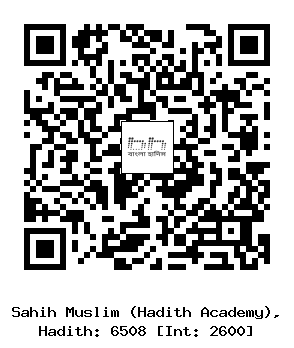 ৬৫০৮-(৮৮/২৬০০) যুহায়র ইবনু হারব (রহঃ) ..... আয়িশাহ্ (রাযিঃ) থেকে বর্ণিত। তিনি বলেন, একদা দু’জন লোক রসূলুল্লাহ সাল্লাল্লাহু আলাইহি ওয়াসাল্লাম এর দরবারে আসলো। তারা তার সঙ্গে কোন বিষয়ে আলোচনা করল। তা কী ছিল, আমি জানি না। অতঃপর তারা তাকে রাগাম্বিত করেছিল। তিনি তাদের উভয়কে অভিসম্পাত করলেন এবং তিরস্কার করলেন। যখন তারা বের হয়ে গেল আমি বললাম, হে আল্লাহর রসূল সাল্লাল্লাহু আলাইহি ওয়াসাল্লাম! যারা (আপনার কাছ থেকে) কল্যাণ লাভ করে। এরা দু’জনে তার কিছুই পাবে না। তিনি বললেন, সে কী ব্যাপার! তিনি [’আয়িশাহ্ (রাযিঃ)] বললেন, আপনি তো তাদের উভয়কে অভিসম্পাত করেছেন এবং ধিক্কার দিয়েছেন। রসূলুল্লাহ সাল্লাল্লাহু আলাইহি ওয়াসাল্লাম বললেন, তুমি কি জানো আমার প্রতিপালকের সাথে এ বিষয়ে আমি কী শর্তারোপ করেছি? আমি বলেছিলাম, "হে আল্লাহ! আমি একজন মানুষ। আমি কোন মুসলিমকে লা’নাত করলে কিংবা তিরস্কার করলে তা তুমি তার জন্য পবিত্রতা ও পুরস্কার বানিয়ে দিও।" (ইসলামিক ফাউন্ডেশন ৬৩৭৭, ইসলামিক সেন্টার ৬৪২৮)