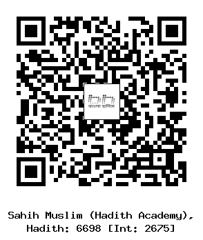 ৬৬৯৮-(১/২৬৭৫) কুতাইবাহ ইবনু সাঈদ ও যুহায়র ইবনু হারব (রহঃ) ..... আবু হুরাইরাহ (রাযিঃ) থেকে বর্ণিত। তিনি বলেন, রসূলুল্লাহ সাল্লাল্লাহু আলাইহি ওয়াসাল্লাম বললেনঃ আল্লাহ জাল্লা শানুহু বলেন, আমি বান্দার ধারণা অনুযায়ী নিকটে আছি। যখন সে আমার যিকর (স্মরণ) করে সে সময় আমি তার সাথে থাকি। বান্দা আমাকে একাকী স্মরণ করলে আমিও তাকে একাকী স্মরণ করি। আর যদি সে আমাকে কোন সভায় আমার কথা স্মরণ করে তাহলে আমি তাকে তার চেয়ে উত্তম সভায় স্মরণ করি। যদি সে আমার দিকে এক বিঘত অগ্রসর হয় তাহলে আমি তার দিকে এক হাত এগিয়ে আসি। যদি সে আমার দিকে হেঁটে আসে আমি তার দিকে দৌড়িয়ে আসি। (ইসলামিক ফাউন্ডেশন ৬৫৬১, ইসলামিক সেন্টার ৬৬১৫)