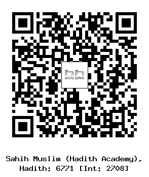 ৬৭৭১-(৫৪/২৭০৮) কুতাইবাহ্ ইবনু সাঈদ, মুহাম্মাদ ইবনু রুমহ্ (রহঃ) ..... খাওলা বিনতু হাকীম আস্ সুলামিয়্যাহ্ (রাযিঃ) থেকে বর্ণিত। তিনি বলেন, আমি রসূলুল্লাহ সাল্লাল্লাহু আলাইহি ওয়াসাল্লাম-কে বলতে শুনেছি যে, তিনি বলেছেনঃ যে লোক কোন ঘাটিতে নেমে এ দু’আ পড়ে, "আউযু বিকালিমাতিল্ লা-হিত তা-মা-তি মিন্ শাররি মা- খলাক"। অর্থাৎ- “আমি আল্লাহর পরিপূর্ণ কালাম দিয়ে তাঁর নিকট তাঁর সৃষ্টির খারাবী হতে আশ্রয় চাই।" সে ঐ ঘাটি হতে অন্য ঘাটিতে রওনা না হওয়া পর্যন্ত তাকে কোন কিছুই কোন ক্ষতি সাধন করতে পারবে না। (ইসলামিক ফাউন্ডেশন ৬৬৩১, ইসলামিক সেন্টার, ৬৬৮৫)