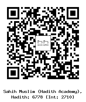 ৬৭৭৮-(৫৮/...) ইয়াহইয়া ইবনু ইয়াহইয়া (রহঃ) ..... বারা ইবনু ’আযিব (রাযিঃ) থেকে বর্ণিত। তিনি বলেন, রসূলুল্লাহ সাল্লাল্লাহু আলাইহি ওয়াসাল্লাম এক লোককে বললেন, ’হে অমুক যখন তুমি তোমার বিছানায় আশ্রয় গ্রহণ করবে। এরপর আমর ইবনু মুররাহ বর্ণিত হাদীসের অবিকল বর্ণনা করলেন। কিন্তু পার্থক্য এই যে, তিনি বলেছেন, “ওয়াবি নাবিয়্যিকাল্লায়ী আরসালতা" অর্থাৎ- “এবং আপনার সে নবীর উপর বিশ্বাস স্থাপন করেছি, যাকে আপনি প্রেরণ করেছেন।” যদি তুমি সে রাত্রে মৃত্যুবরণ করো তাহলে ফিতরাতের উপরই মৃত্যুবরণ করলে। আর যদি ভোরে উপনীত হও তবে তুমি কল্যাণপ্রাপ্ত হবে। (ইসলামিক ফাউন্ডেশন ৬৬৩৭, ইসলামিক সেন্টার ৬৬৯১)