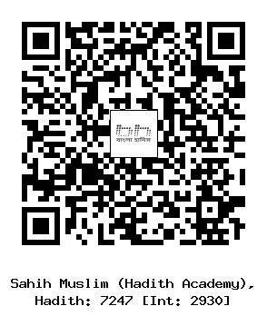 ৭২৪৭-(৯৬/২৯৩০) হাসান ইবনু ’আলী আল হলওয়ানী ও আবদ ইবনু হুমায়দ (রহঃ) ..... সালিম ইবনু ’আবদুল্লাহ (রাযিঃ) থেকে বর্ণিত। ’আবদুল্লাহ ইবনু উমর (রাযিঃ) বলেছেন, রসূলুল্লাহ সাল্লাল্লাহু আলাইহি ওয়াসাল্লাম একদল সাহাবার সাথে রওনা হলেন। তাদের মধ্যে ’উমার ইবনুল খাত্তাব (রাযিঃ)-ও ছিলেন। ইবনু সাইয়্যাদ বয়োঃপ্রাপ্ত হওয়ার কাছাকাছি পৌছেছে। তিনি তাকে বানী মু’আবিয়্যার কিল্লার কাছে অন্যান্য বালকদের সঙ্গে খেলাধূলা অবস্থায় দেখতে পেলেন। অতঃপর তিনি উমর ইবনু সবিত এর হাদীসের শেষ পর্যন্ত ইউনুস এর অবিকল হাদীস বর্ণনা করেছেন। তবে ইয়াকুব এর এ হাদীসের মধ্যে এ কথা বর্ধিত বর্ণিত রয়েছে যে, আমার পিতা لَوْ تَرَكَتْهُ بَيَّنَ এর ব্যাখ্যায় বলেছেন لَوْ تَرَكَتْهُ أُمُّهُ بَيَّنَ أَمْرَهُ অর্থাৎ তার মা যদি তাকে ঐ অবস্থায় ছেড়ে দিতো তবে তার ব্যাপারটি উন্মোচন হয়ে যেত। (ইসলামিক ফাউন্ডেশন ৭০৯১, ইসলামিক সেন্টার ৭১৪৫)