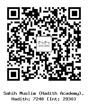 ৭২৪৮-(৯৭/...) আবদ ইবনু হুমায়দ ও সালামাহ্ ইবনু শাবীব (রহঃ) ..... ইবনু উমর (রাযিঃ) থেকে বর্ণিত। একদা রসূলুল্লাহ সাল্লাল্লাহু আলাইহি ওয়াসাল্লাম একদল সাহাবাদের নিয়ে ইবনু সাইয়্যাদ এর কাছে গেলেন। এদের মাঝে উমার ইবনুল খাত্তাব (রাযিঃ)-ও ছিলেন। এমন সময় সে বানী মাগালার দুর্গের পাশে এক দল বালকের সঙ্গে ক্রীড়ারত অবস্থায় ছিল। তখন সে বালক ছিল। বর্ণনাকারী এ হাদীসটি ইউনুস এবং মালিক এর অবিকল বর্ণনা করেছেন। তবে ’আবদ ইবনু হুমায়দ (রহঃ) ইবনু উমার এর হাদীস তথা উবাই ইবনু কা’বের সঙ্গে নবী সাল্লাল্লাহু আলাইহি ওয়াসাল্লাম এর বাগানের দিকে রওয়ানার হাদীসটি উল্লেখ করেননি। (ইসলামিক ফাউন্ডেশন ৭০৯২, ইসলামিক সেন্টার ৭১৪৬)