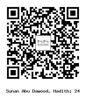 ২৪। হুকাইমাহ বিনতু উমাইমাহ বিনতু রুক্বাইক্বাহ তাঁর মা থেকে বর্ণনা করেন, তিনি বলেছেন, নবী সাল্লাল্লাহু আলাইহি ওয়াসাল্লাম-এর একটি কাঠের পাত্র ছিল। সেটি তাঁর খাটের নিচে থাকত। রাতের বেলায় তিনি তাতে পেশাব করতেন।[1]