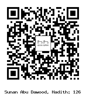 ১২৬। রুবাই’ বিনতু মু’আবিবয ইবনু ’আফরা (রাঃ) সূত্রে বর্ণিত। তিনি বলেন, রাসূলুল্লাহ সাল্লাল্লাহু আলাইহি ওয়াসাল্লাম আমাদের নিকট আসতেন। বর্ণনাকারী বলেন, একদা তিনি বললেনঃ আমার জন্য অযুর পানি ঢেলে দাও। বর্ণনাকারী রাসূলুল্লাহ সাল্লাল্লাহু আলাইহি ওয়াসাল্লাম-এর অযুর বর্ণনা দিতে গিয়ে বলেন, তিনি তিনবার উভয় হাত কব্জি পর্যন্ত ধুলেন। তিনবার মুখ ধুলেন। একবার কুলি করলেন এবং নাকে পানি দিলেন। তিনবার করে উভয় হাত (কনুই পর্যন্ত) ধুলেন। মাথা মাসাহ্ করলেন দু’বার। (মাথা মাসাহ্) প্রথমে পিছন দিক থেকে শুরু করলেন, এরপর সামনের দিক থেকে। তিনি উভয় কানের বাহির ও ভিতরের অংশও মাসাহ্ করলেন এবং তিনবার করে উভয় পা ধুলেন।[1]