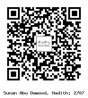 ২৭০৭। ’আব্দুর রাহমান ইবনু গানাম (রহঃ) সূত্রে বর্ণিত। তিনি বলেন, ’আমরা শুরাহবীল ইবনুস সিমত (রাঃ)-এর নেতৃত্বে কিন্নাসরীন শহর অবরোধ করি। তা বিজিতি হলে সেখানে মেষ ও গরু গানীমাত হিসাবে লাভ হলো। তিনি এর একটি অংশ আমাদের মধ্যে বণ্টন করে বাকী অংশ গানীমাতের খাতে রেখে দিলেন। পরে আমি মু’আয ইবনু জাবাল (রাঃ)-এর সাথে দেখা করে তার সঙ্গে এ বিষয়ে আলাপ করি। তিনি বললেন, ’আমরা রাসূলুল্লাহ সাল্লাল্লাহু আলাইহি ওয়াসাল্লাম-এর সাথে খায়বারের যুদ্ধে যোগাযোগ করেছিলাম। সেখানে ’আমরা কিছু মেষ পেলাম। রাসূলুল্লাহ সাল্লাল্লাহু আলাইহি ওয়াসাল্লাম তার একটা অংশ আমাদের মাঝে বণ্টন করেন এবং বাকী অংশ গানীমাতের খাতে রেখে দেন।[1]